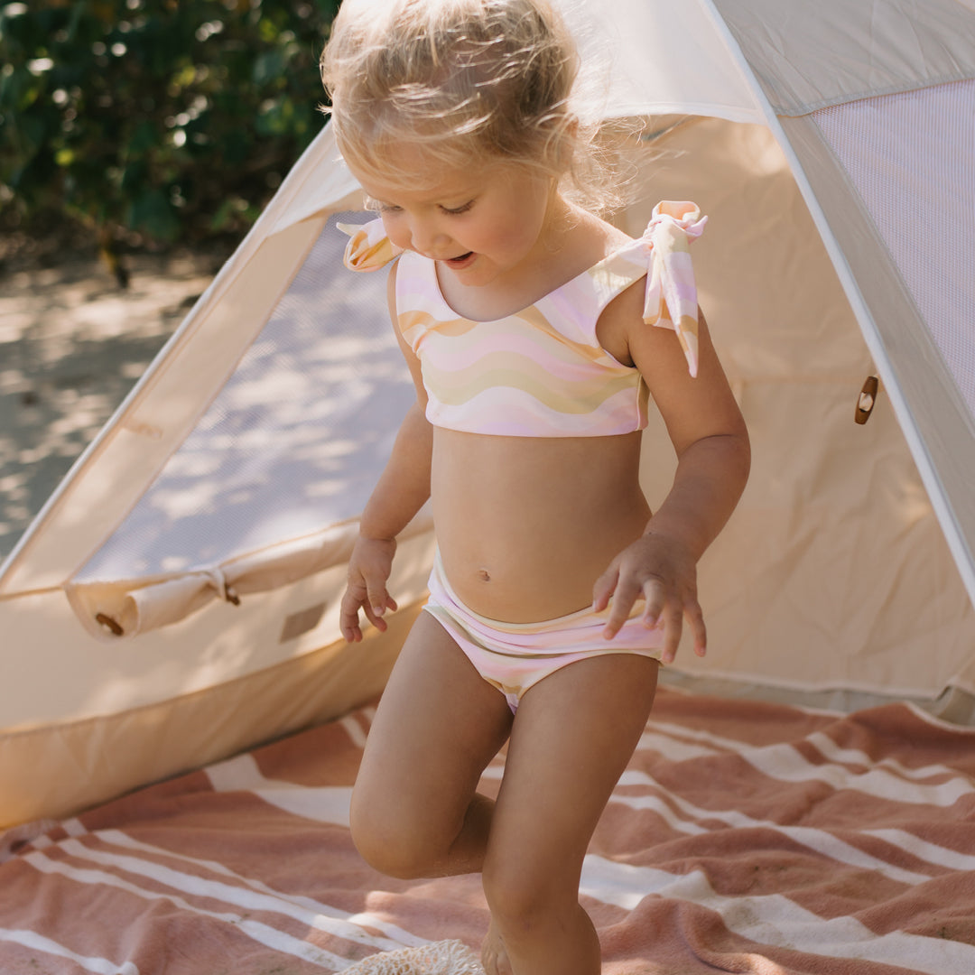 SaleGolden Children Rainbow Beach Two Piece Swimsuit 70s Wave